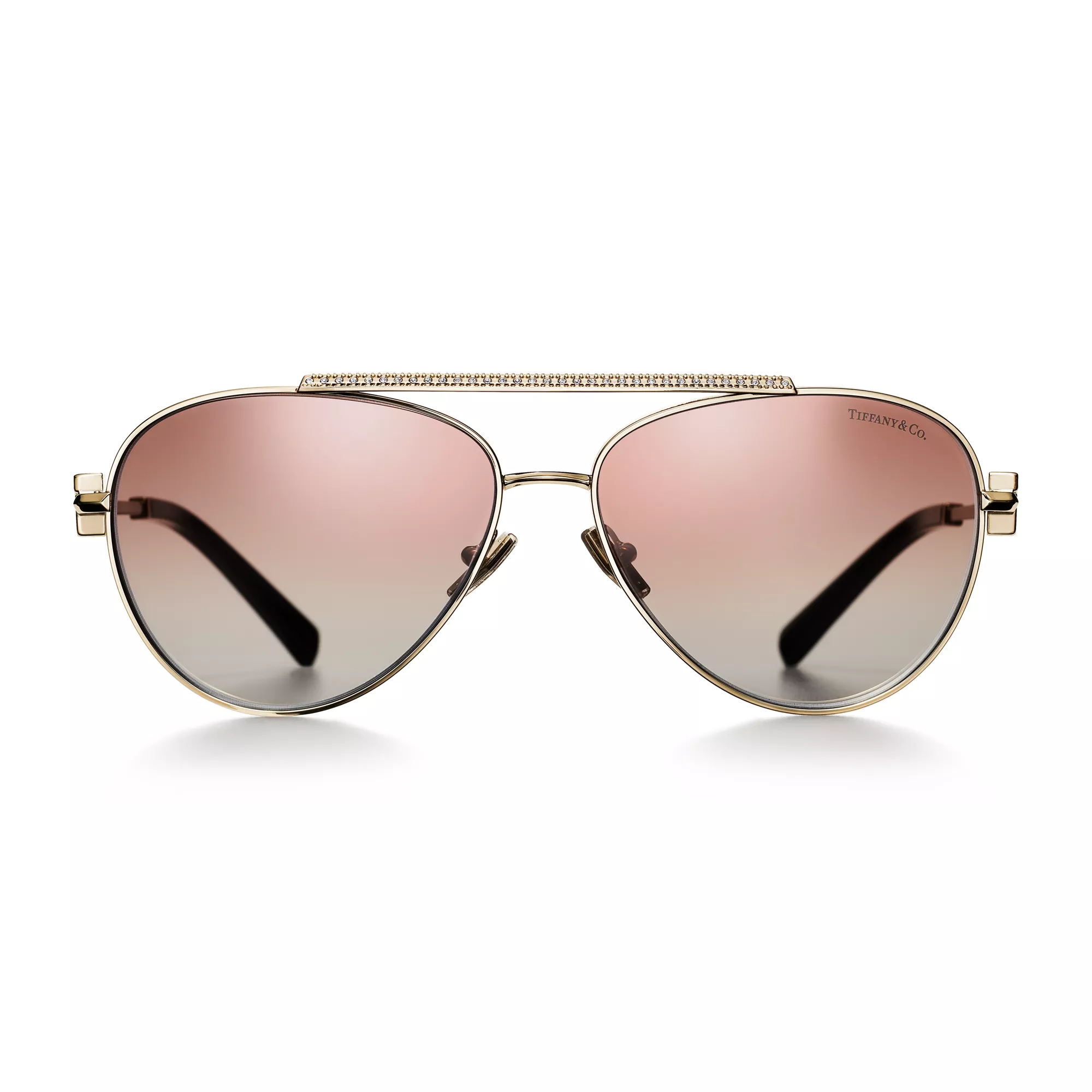 5. Tiffany T:Sunglasses in Pale Gold-coloured Metal with Pink Gradient Lenses