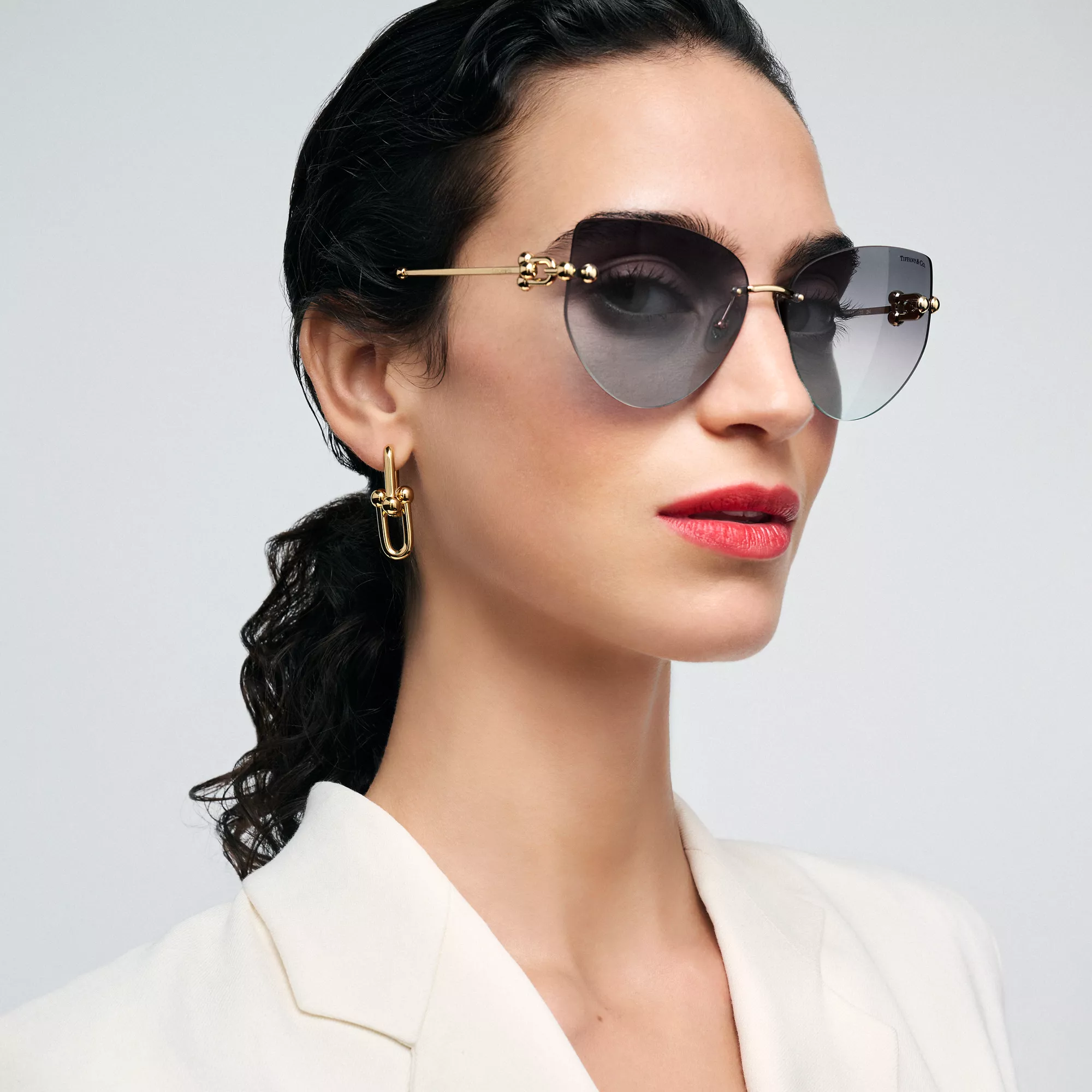5. Tiffany HardWear:Sunglasses in Pale Gold-colored Metal with Gray Gradient Lenses