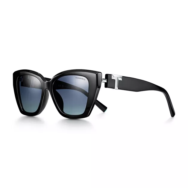 5. Tiffany T:Sunglasses in Black Acetate with Azure Dark Blue Gradient Lenses