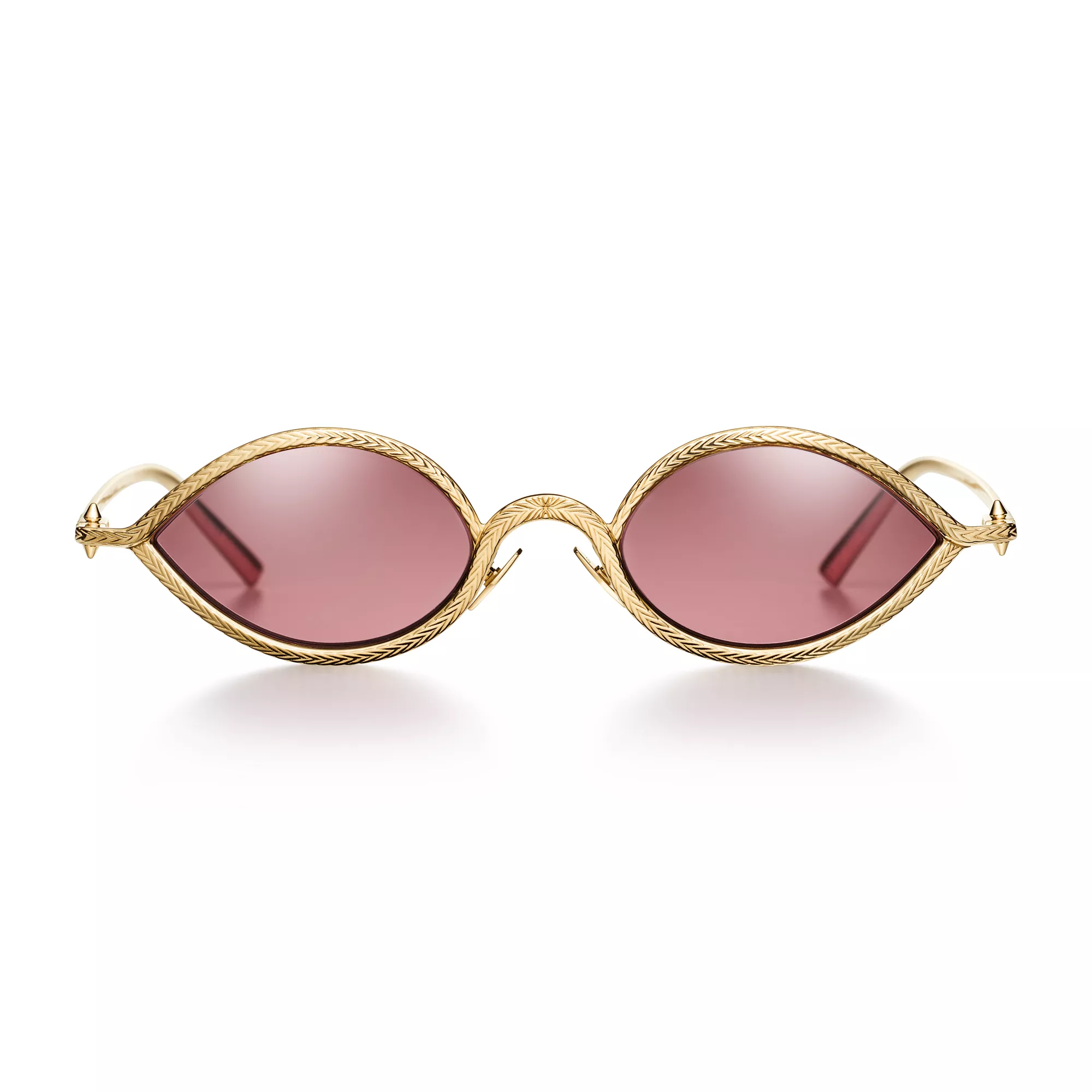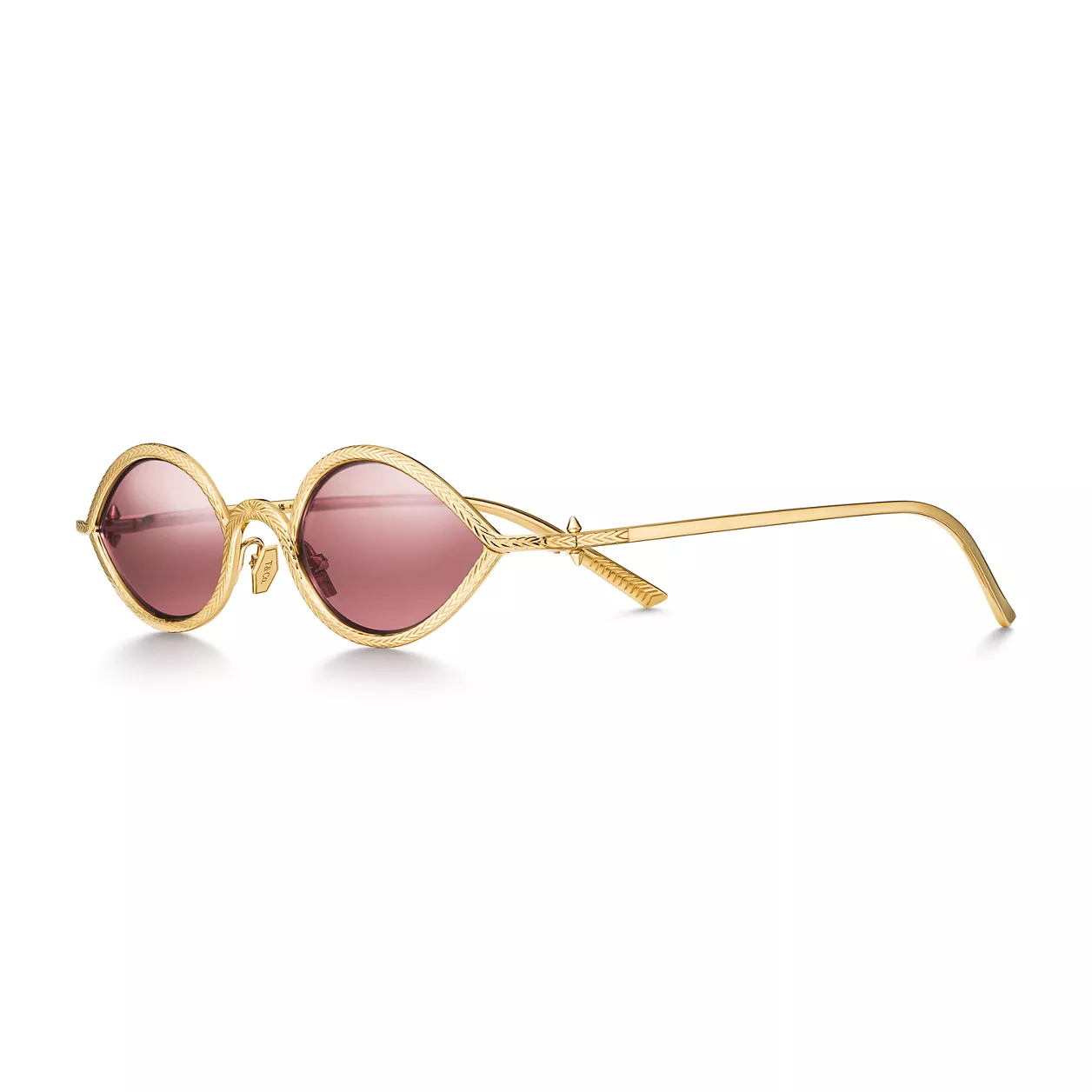 5. Tiffany Titan by Pharrell Williams:Sunglasses in Gold with Red Crystal Lenses