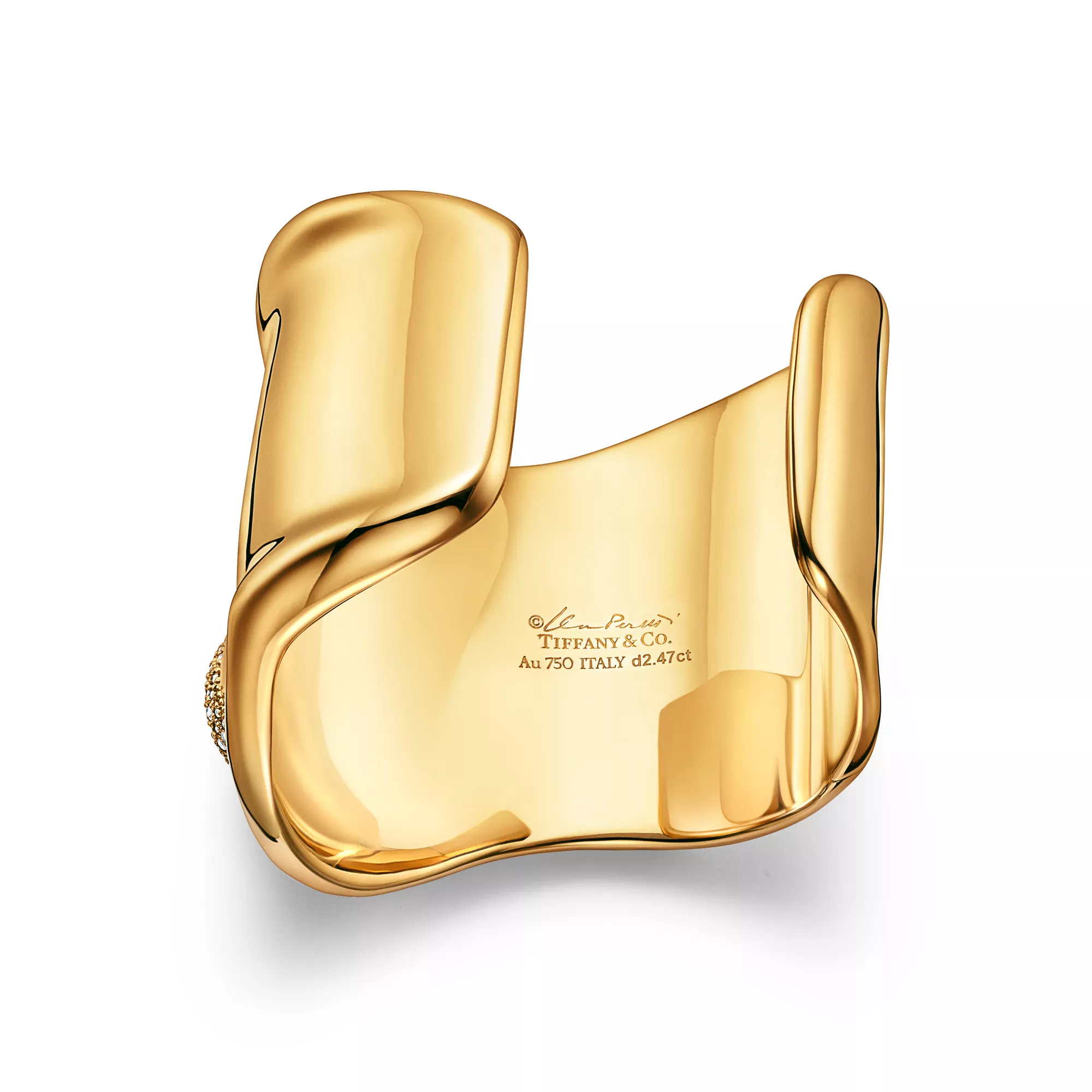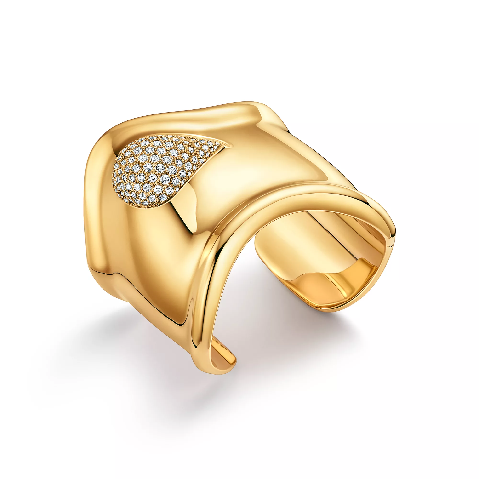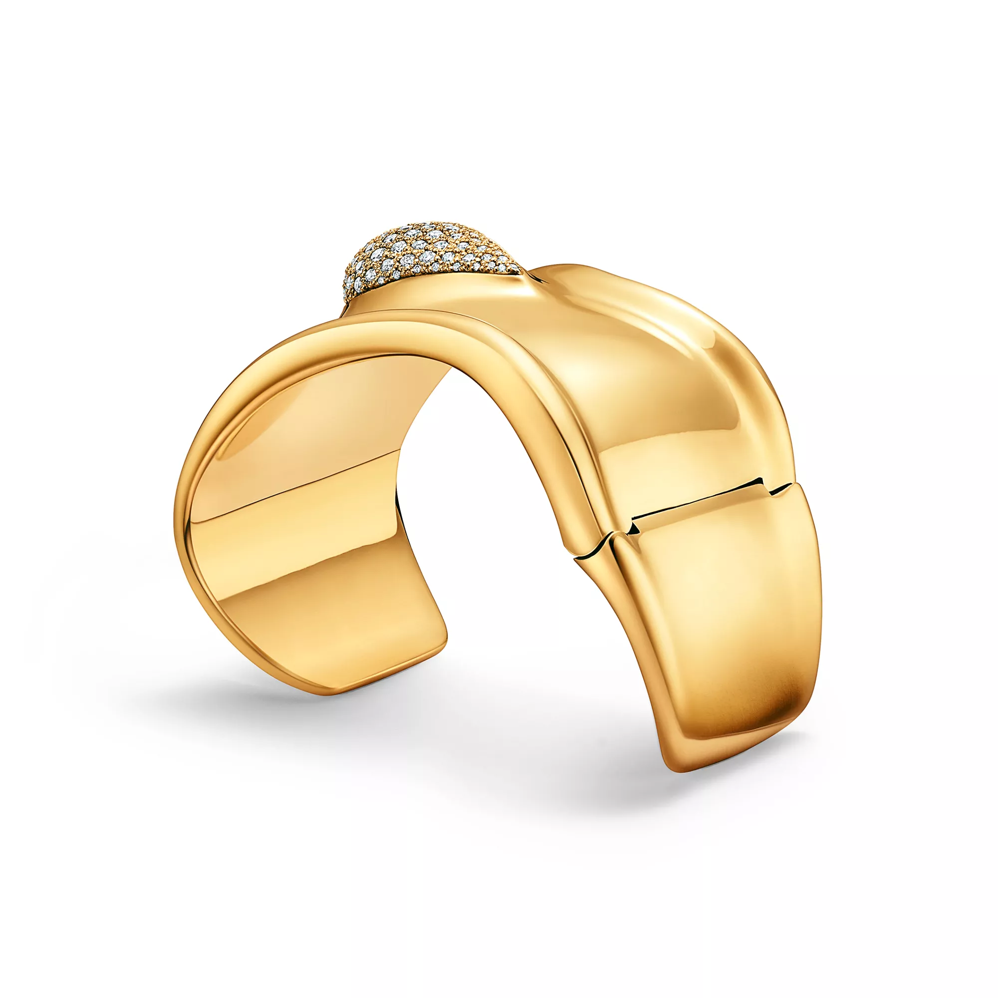 4. Elsa Peretti®:Bone Cuff in Yellow Gold with Pavé Diamonds, 61 mm Wide