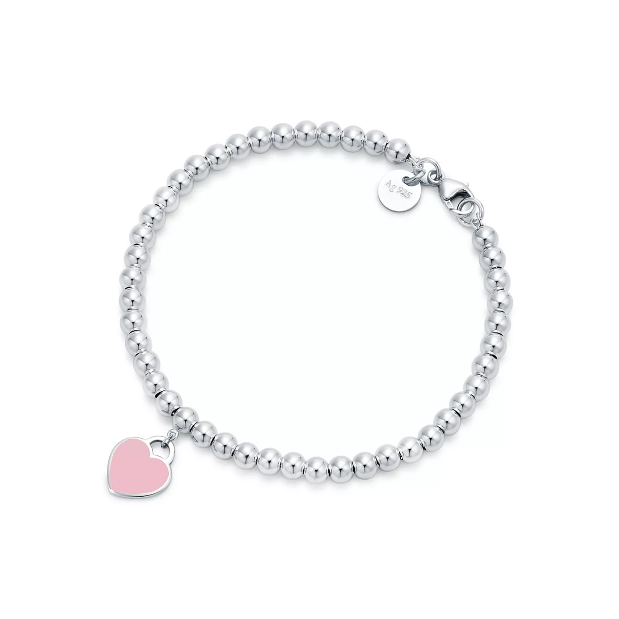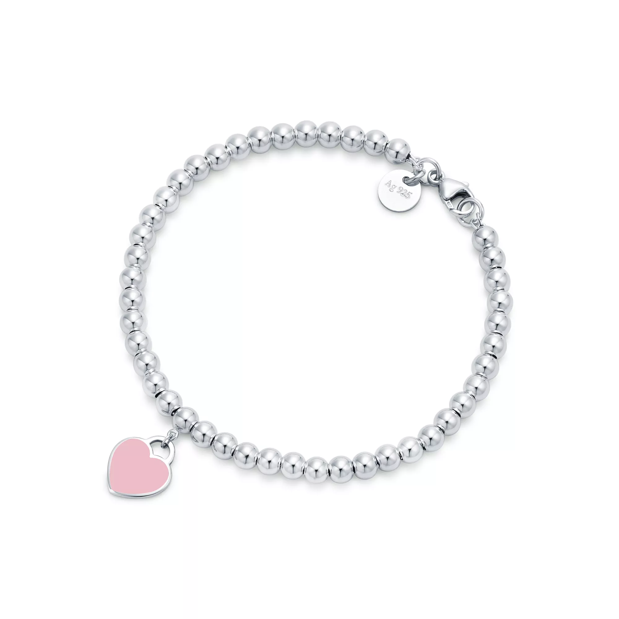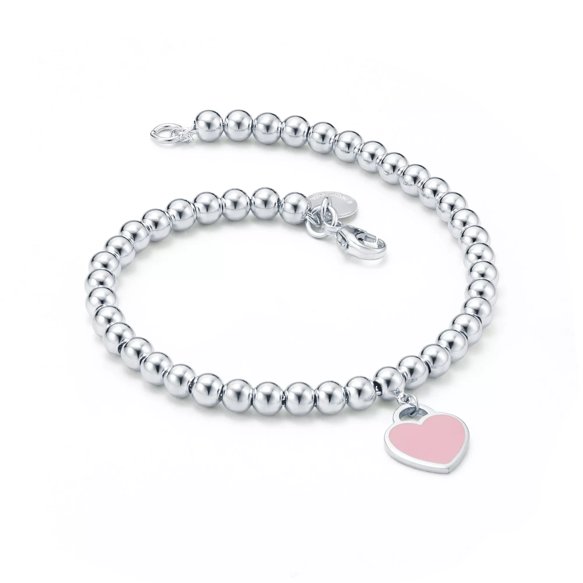 4. Return to Tiffany™:Pink Heart Tag Bead Bracelet in Silver, 4 mm