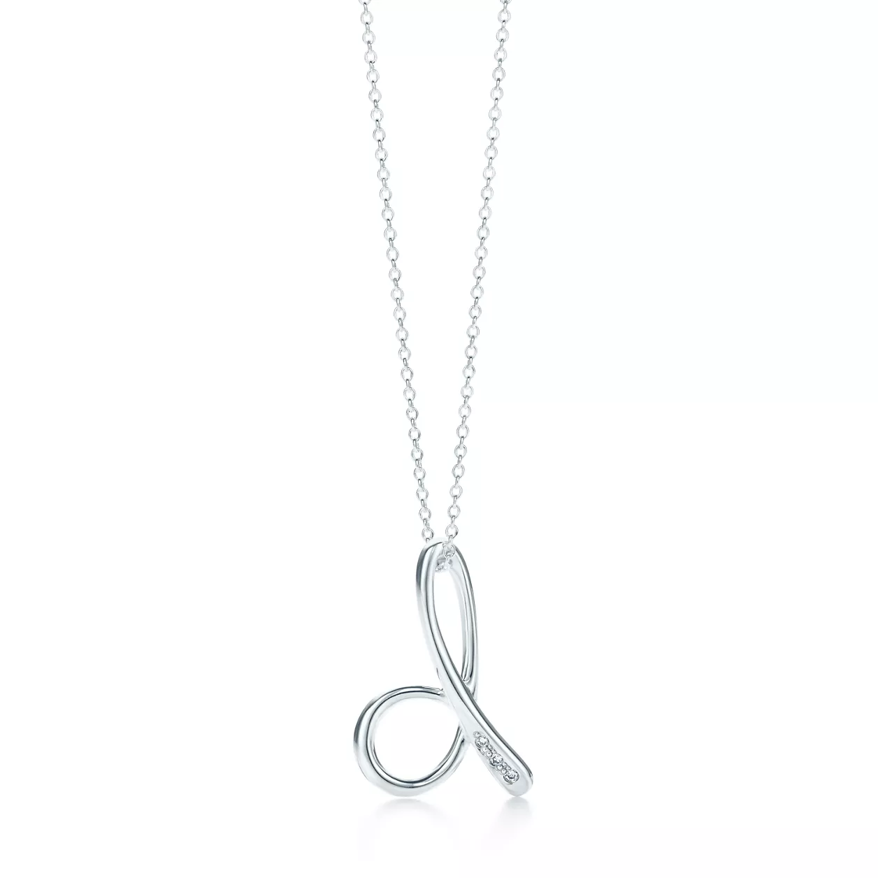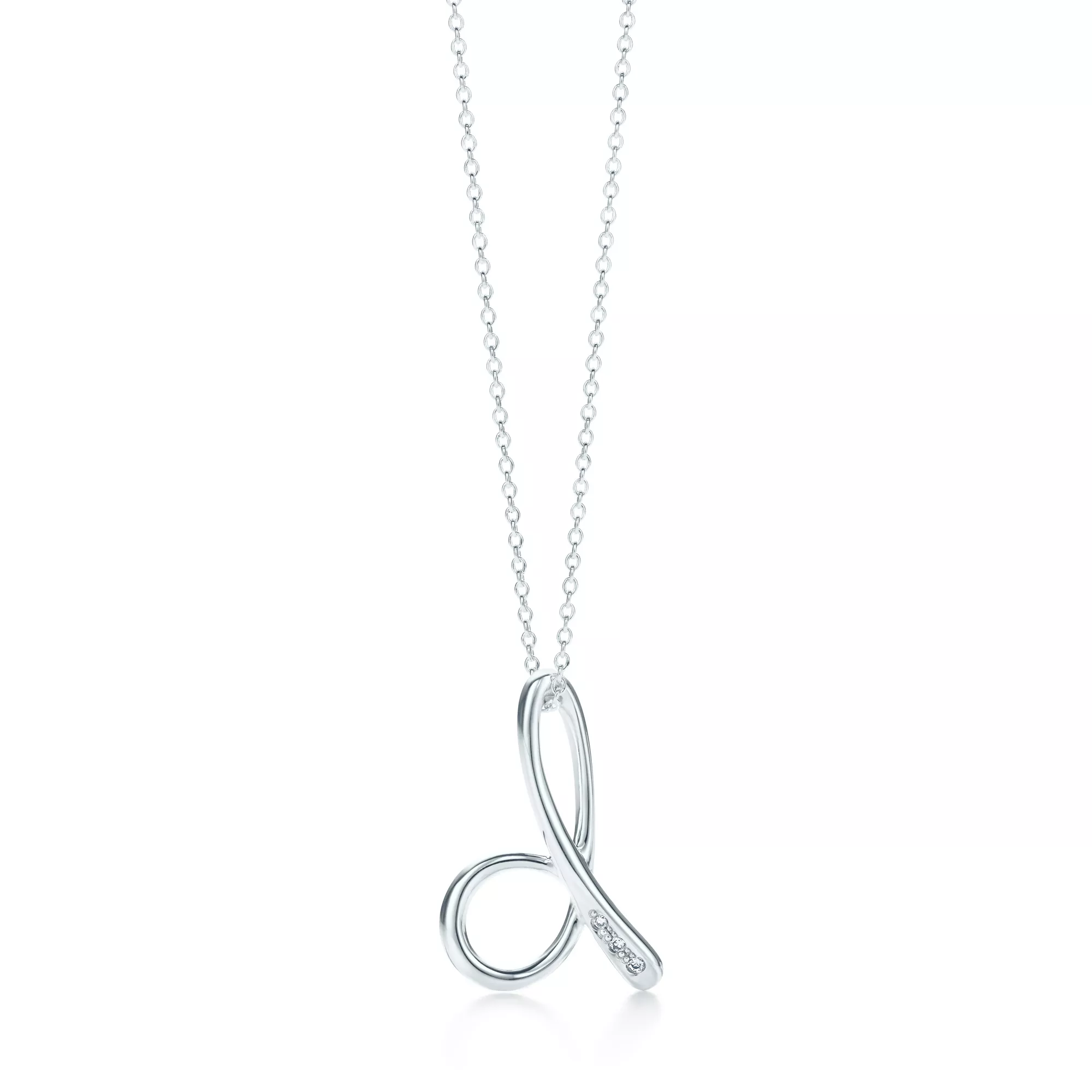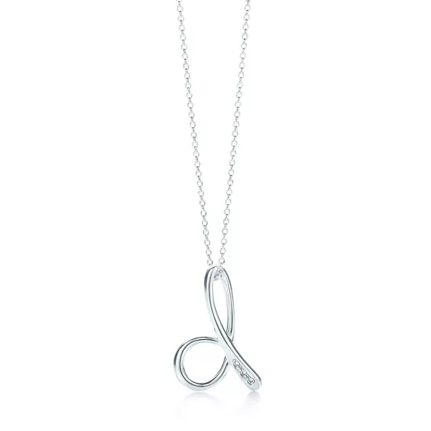 - Elsa Peretti™:Small Alphabet Pendant in Sterling Silver with Diamonds
