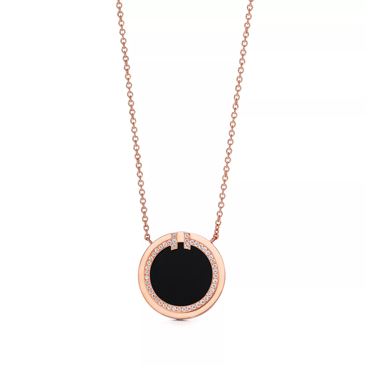 4. Tiffany T:Diamond and Black Onyx Circle Pendant in Rose Gold