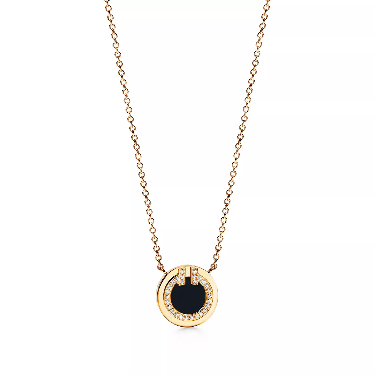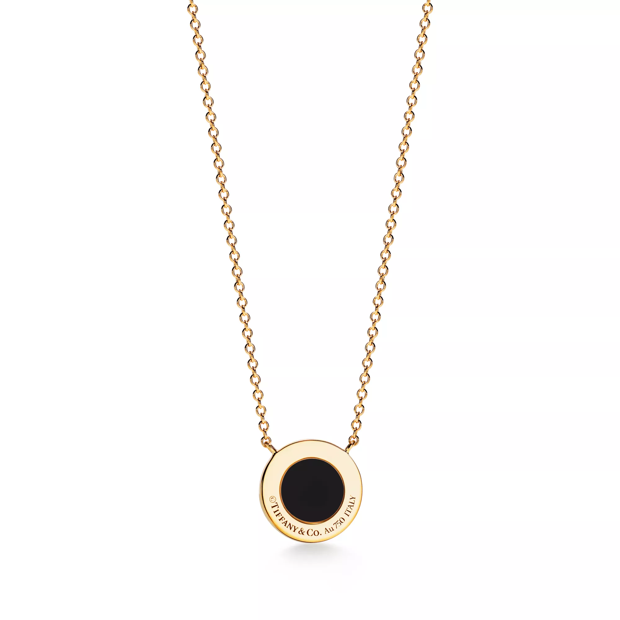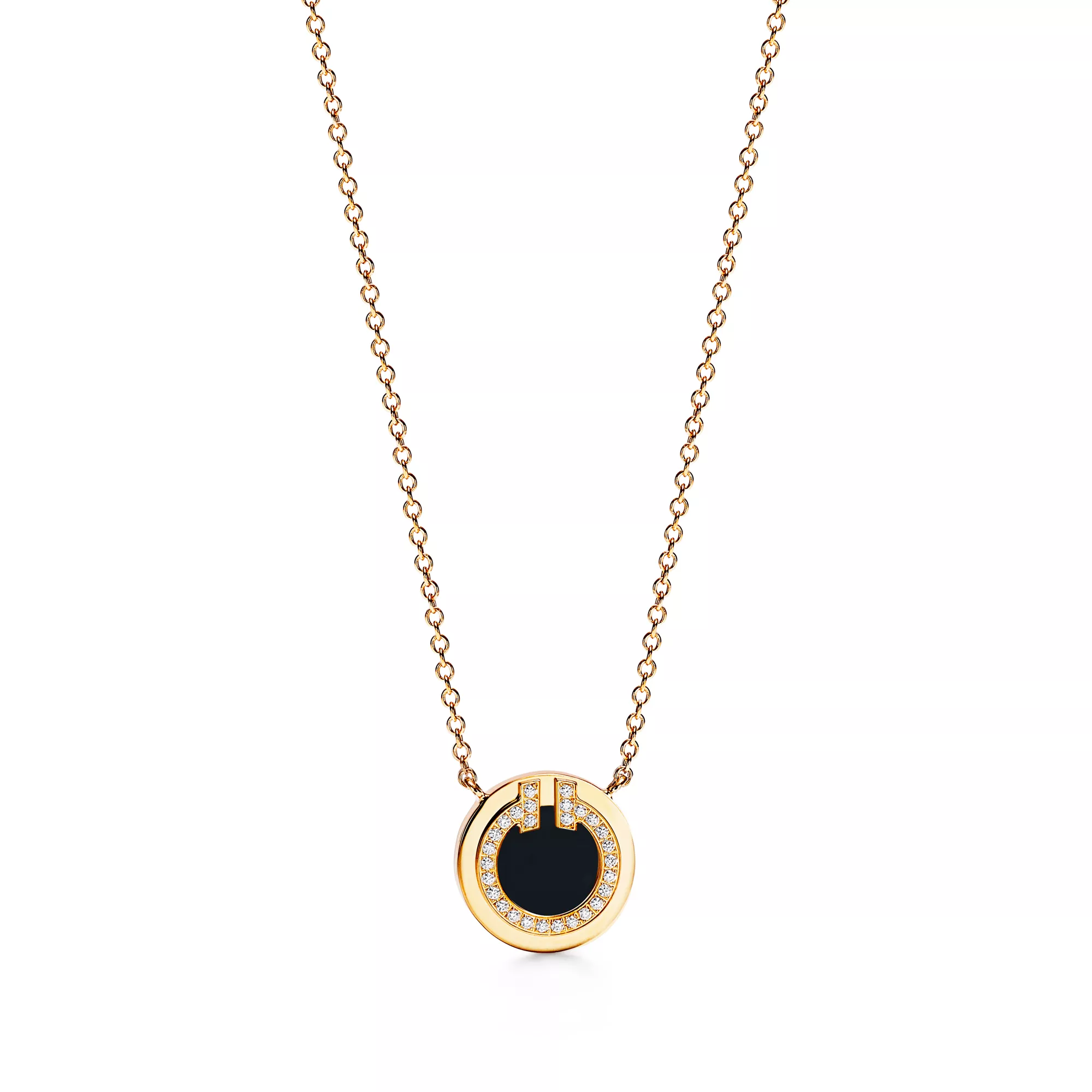 4. Tiffany T:Diamond and Black Onyx Circle Pendant in Yellow Gold