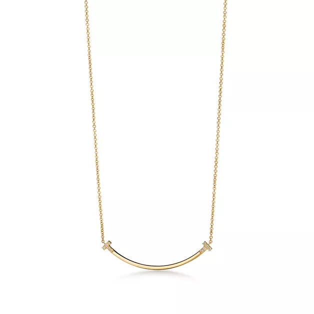 4. Tiffany T:Smile Small Pendant in Yellow Gold with Diamonds