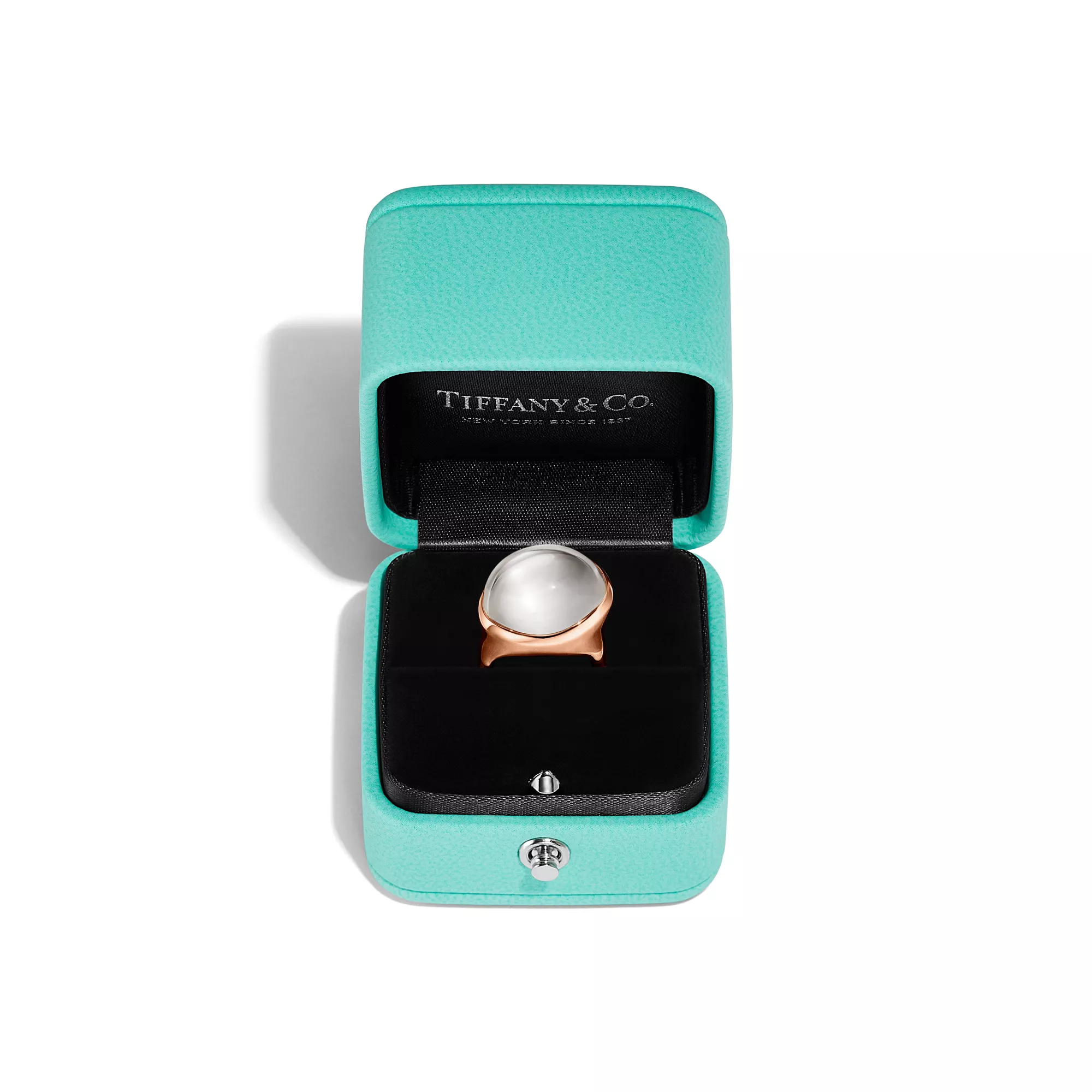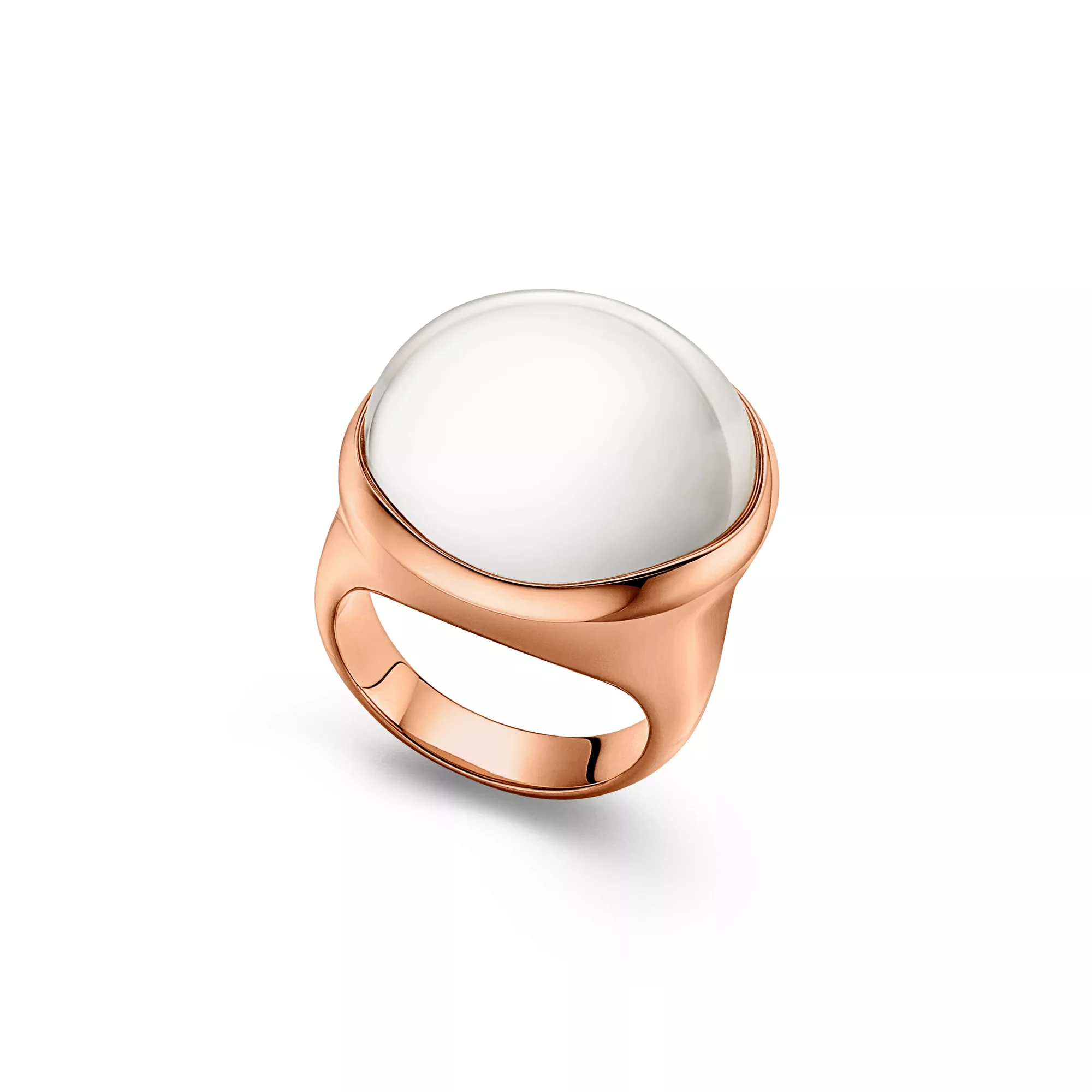 4. Elsa Peretti®:Cabochon Ring in Rose Gold with Rock Crystal