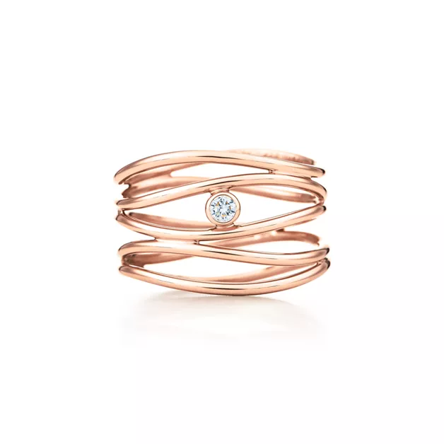 18k rose gold with a round brilliant diamondCarat weight .05Original designs copyrighted by the Nando and Elsa Peretti Foundation -