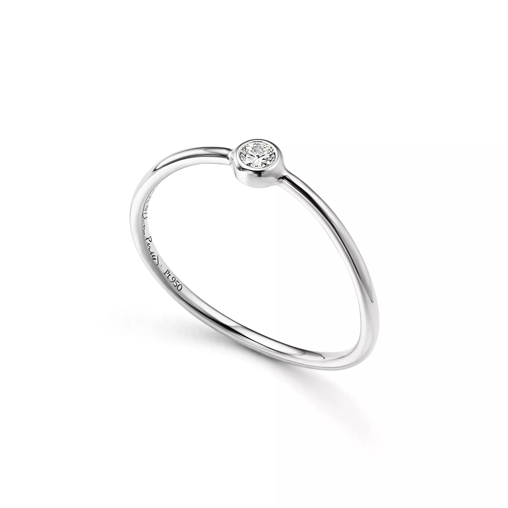 Platinum with a round brilliant diamondCarat weight .06Original designs copyrighted by the Nando and Elsa Peretti Foundation -
